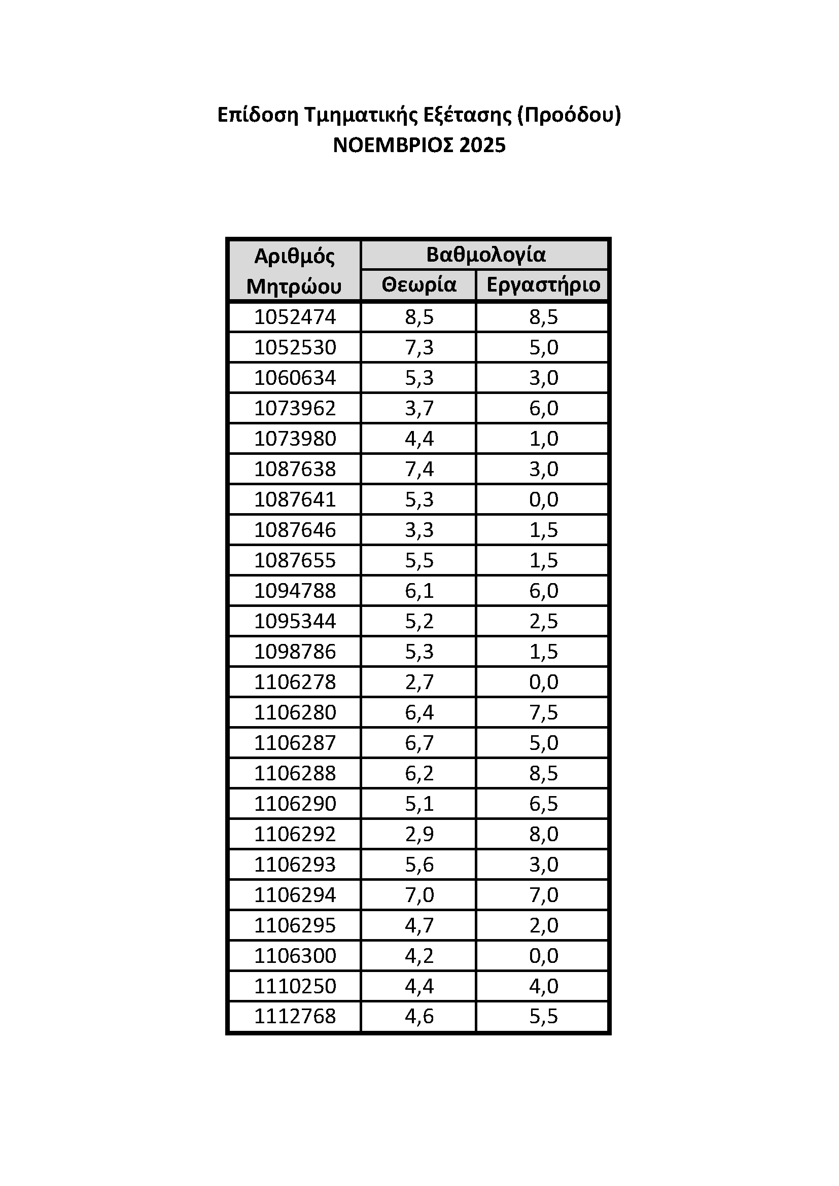 η επίδοσή σας στην Τμηματική Εξέταση Νοεμβρίου 2025 εμφανίζεται στον παρακάτω πίνακα: